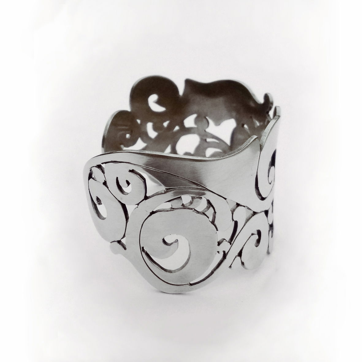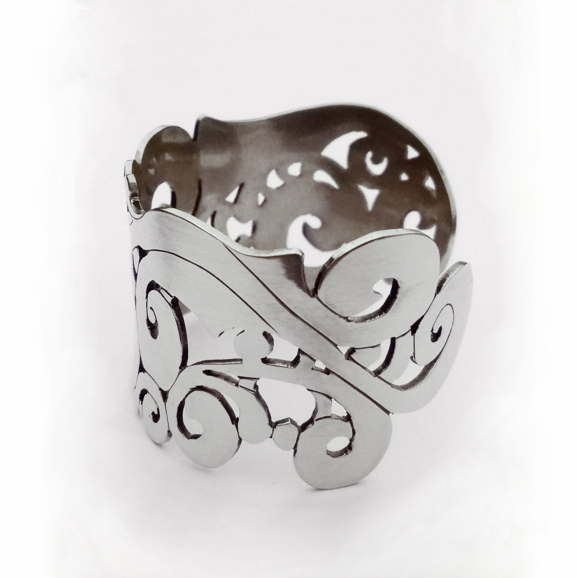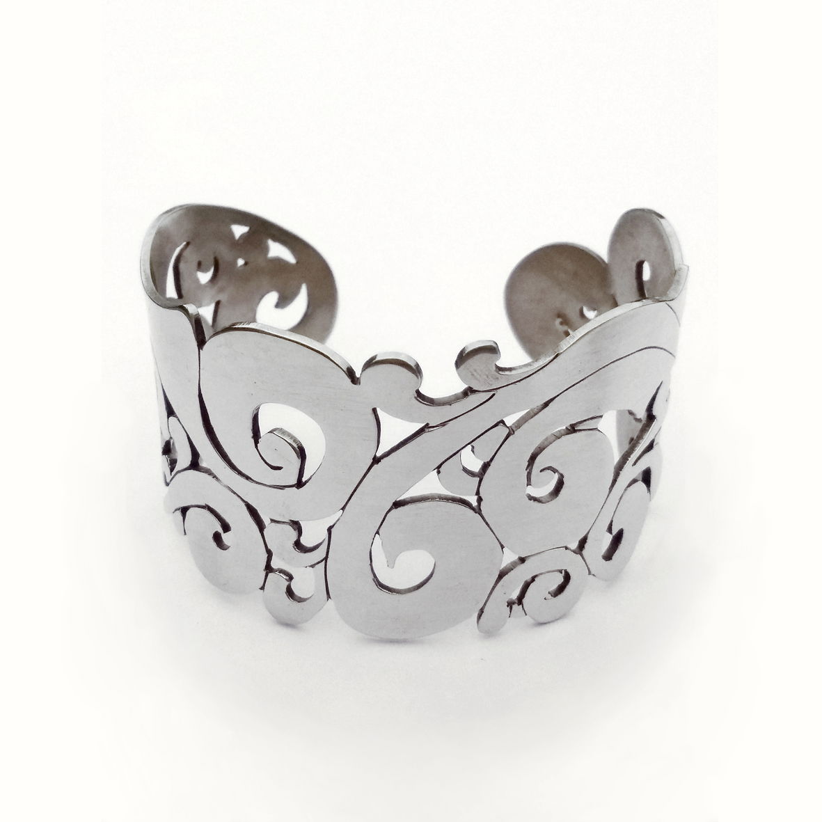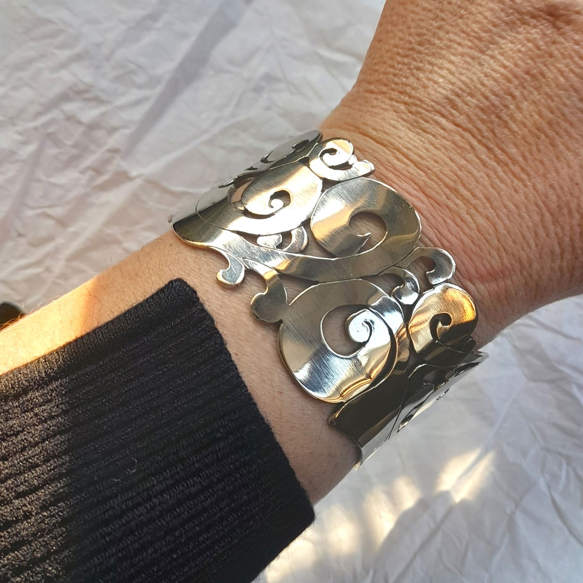 Este brazalete nació frente al mar, en la playa de Pinamar. Lo diseñé mientras contemplaba el movimiento hipnótico de las olas, ese ir y venir constante que nunca se repite igual.