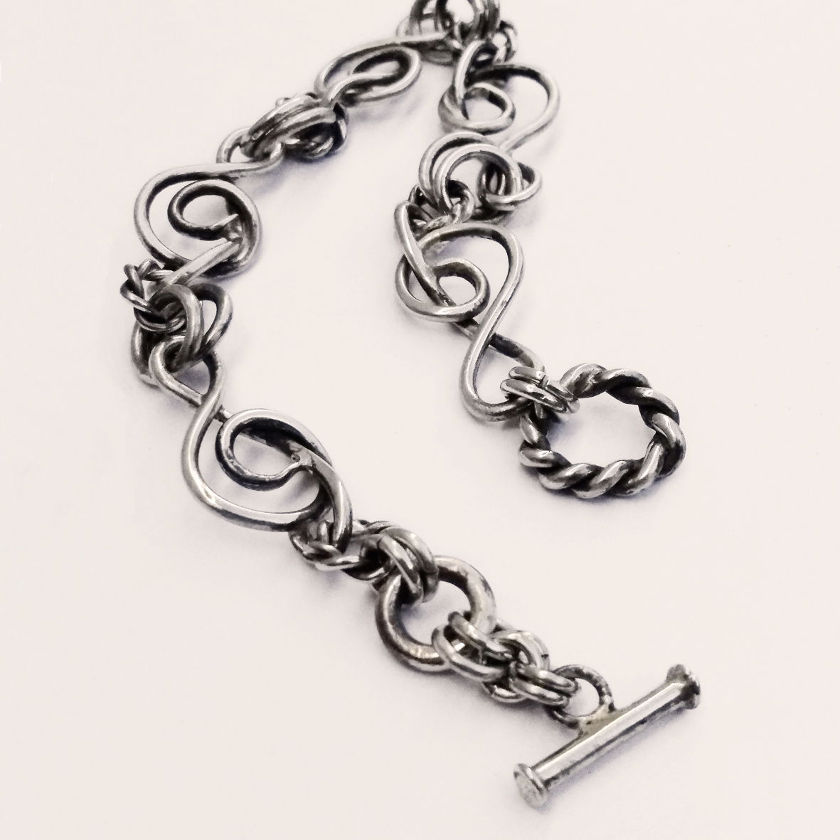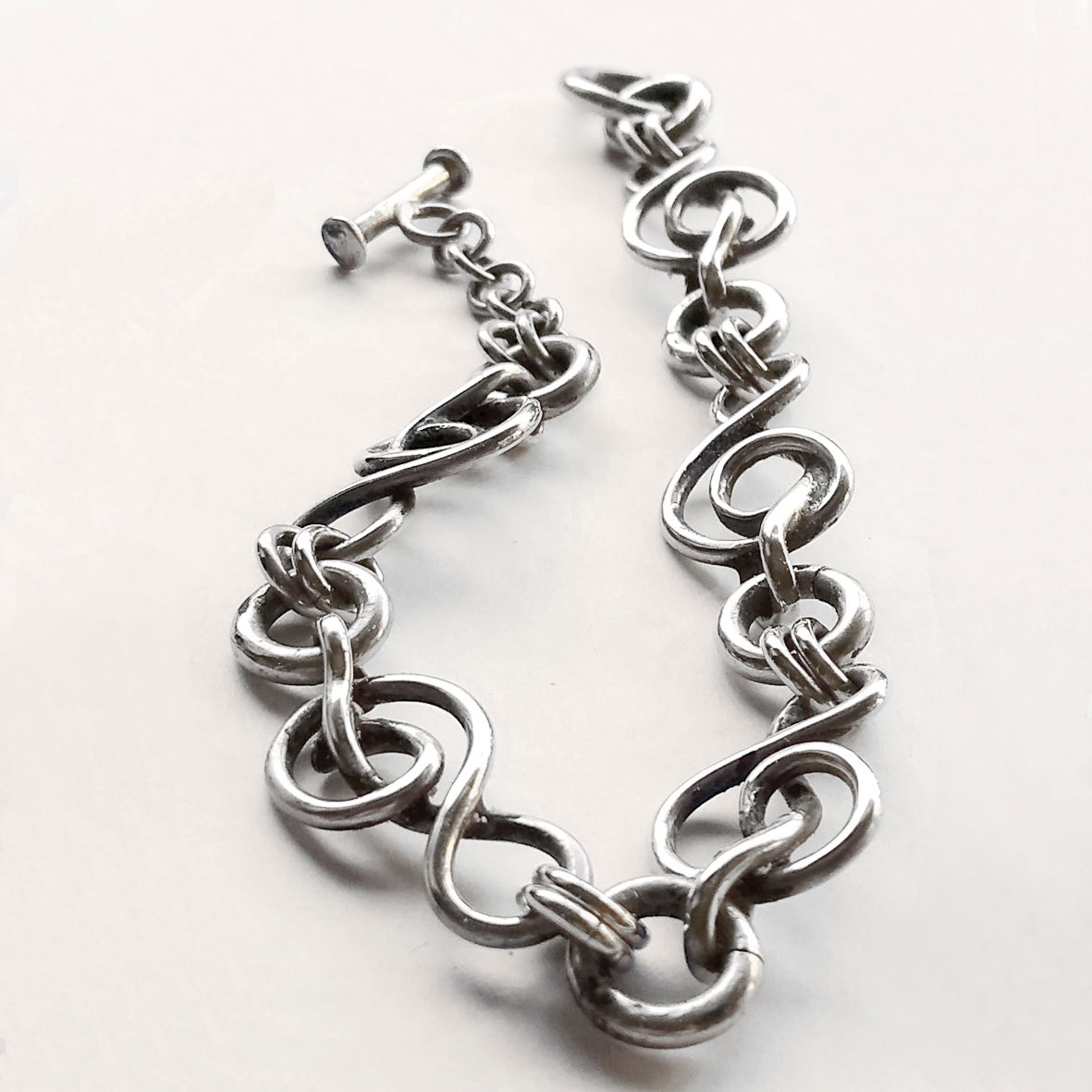 Pulsera de alpaca inspirada en la música. Su eslabón Principal se trata de una clave de Sol. Por eso llamé a esta pulsera "Cecilia", por Santa Cecilia, patrona de la música y de la poesía. La pulsera tiene 20 cm de largo.