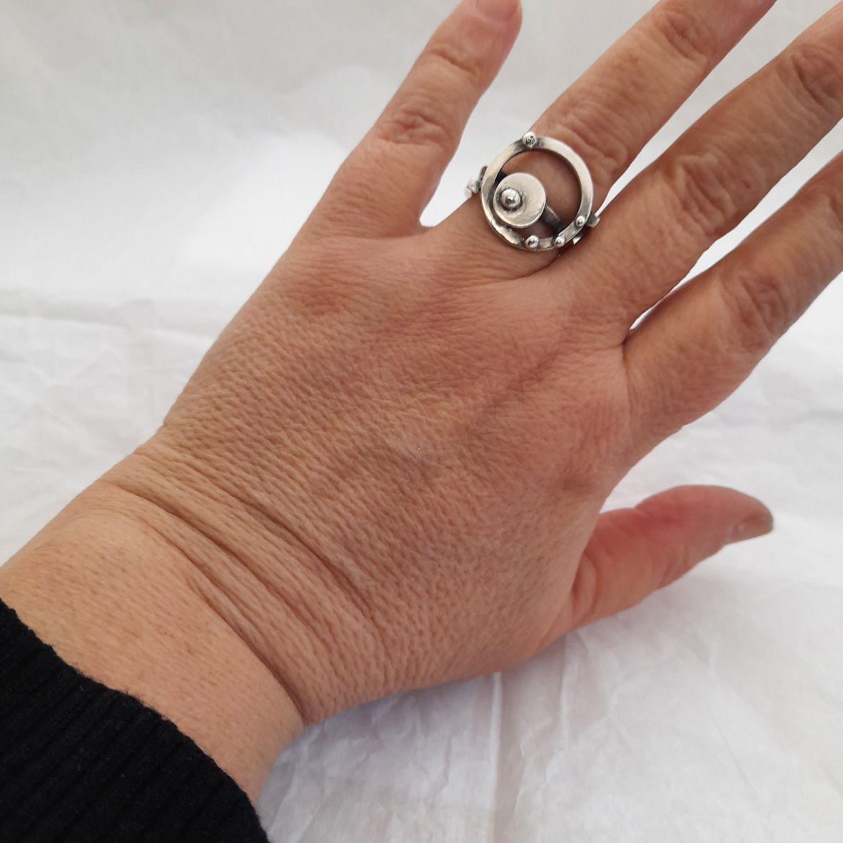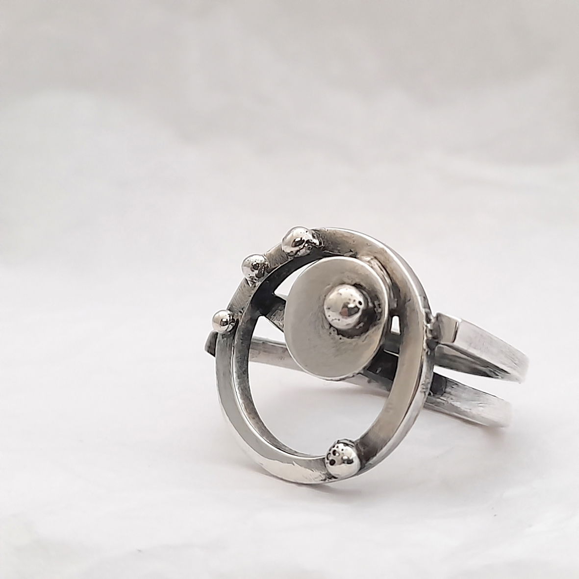 Este anillo está inspirado en la naturaleza, donde todo es circular: el crecimiento de las plantas, los ciclos del agua, el movimiento de los planetas. El círculo es origen y retorno, expansión y centro. De él derivan todas las formas, y en su perfección habita el número áureo, esa proporción secreta que rige la belleza en la naturaleza.
