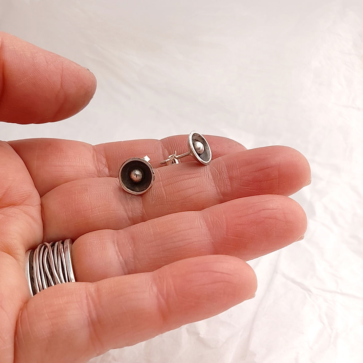 Estos aros pertenecen a la colección "Intuición", donde trabajé las formas circulares como motor, como punto de partida. Pensando en la naturaleza, donde todo es circular, el crecimiento de las plantas, el movimiento de los planetas, las ondas en el agua.