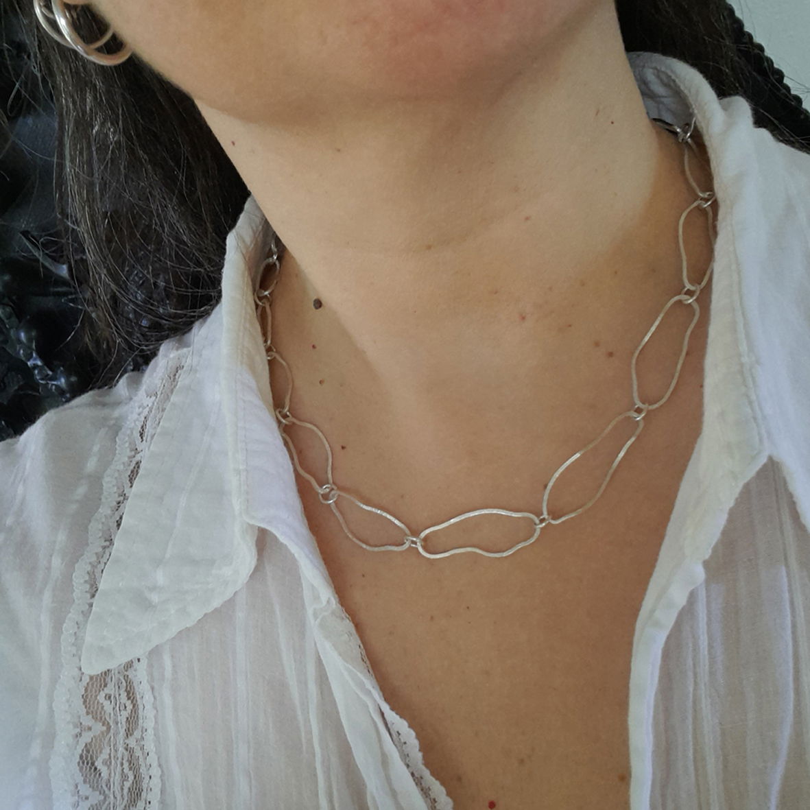 Realizada íntegramente a mano en plata 925, mediante técnicas tradicionales de orfebrería. Cada pieza se trabaja de forma individual, respetando los tiempos del proceso, del material y del oficio.