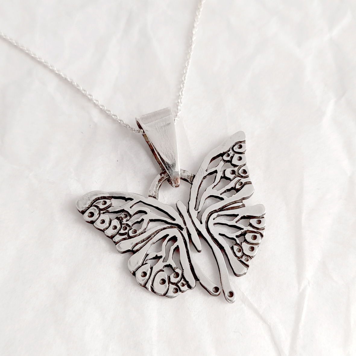 La mariposa trea la cadena de plata de la foto de regalo!