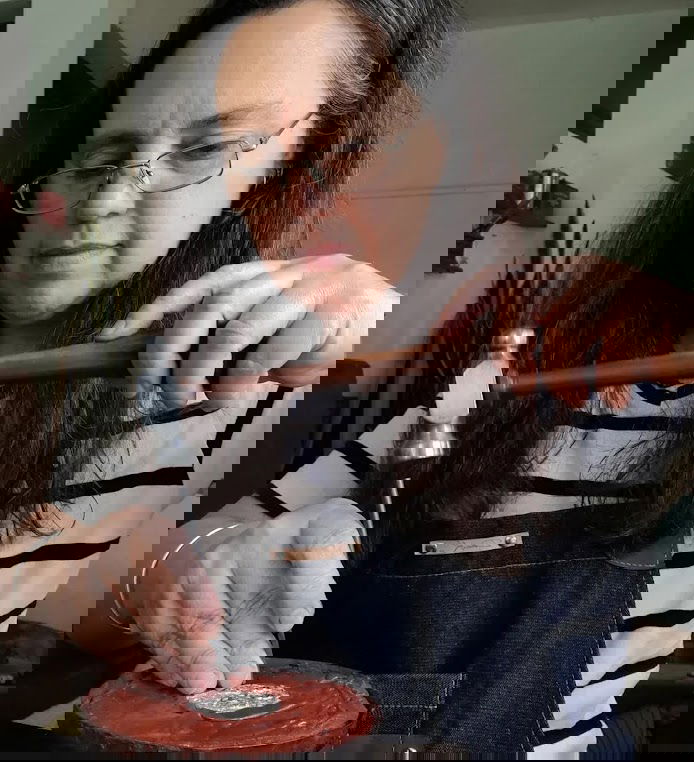 Entonces no es casualidad que cuando hago Clinica de Arte con Miguel Ronsino, cada clase fue un replanteo profundo sobre mi rol como artista, de cual es mi camino y todo lo que ese camino abarca. Así surgue la joyería como propuesta artística. Las técnicas de orfebrería las aprendí con Maximiliano Rodríguez. Cuando entré a su taller en San Antonio de Areco, no tenía idea el vuelco que tomaría mi vida. Él me transmitió el amor y el respeto al oficio de orfebre. Amo trabajar el metal. Hoy la orfebrería es mi trabajo, aunque no lo sienta como un trabajo… diría más que es mi vida, mi manera de habitar el mundo. Al igual que como con el grafito y la tinta, me he enamorado del metal, y al realizar una pieza de orfebrería, siento como se despliegan en las distintas partes del proceso, mi parte de arquitecta, de ilustradora, de artista y de orfebre. El mundo de la orfebrería, de la joyería, es un mundo infinito y fascinante.